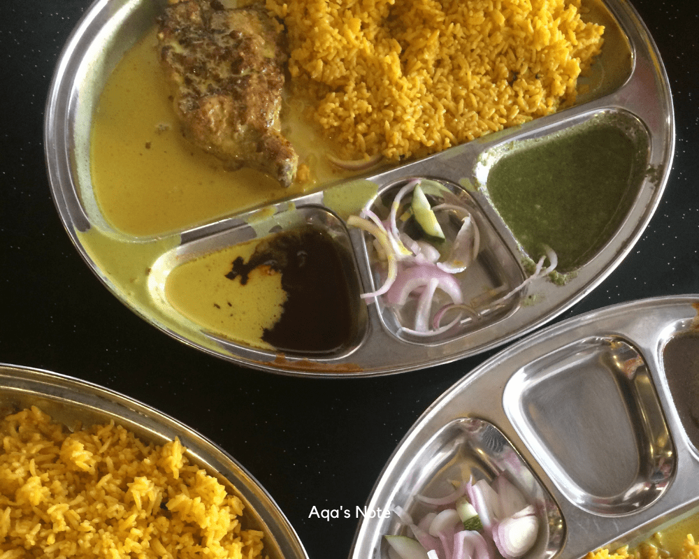 At first, I’m not a big fan of biryani rice, but this changes my perception of that. The reason is I feel fulfilled, the chicken and rice is season nicely, and all the condiments are complimenting each other. I even finished the onion, and that people are the first time I ate all of it.